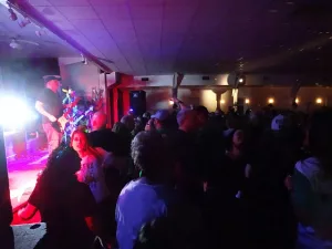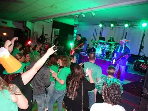The Giants Of Science then fired up the dance party, quickly packing the dance floor with their happy-go-lucky mixture of 1980s and other favorites. The Giants welcomed some audience members up to the stage to sing on a few numbers, plus a djembe-wielding “Professor” (Q94’s Jim Price) to tap out a few beats on the Rolling Stones’ “Honky Tonk Women.” And as the merriment continued, Mick and the Giants Of Science acknowledged and remembered Dauber several times during their performance, and also frequently thanked the Cambria County community for all the love and support constantly shown to the group over the years.