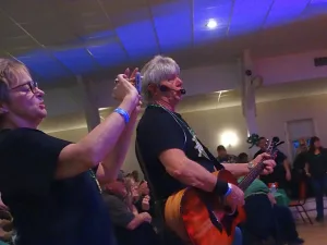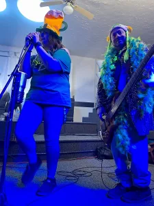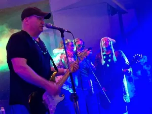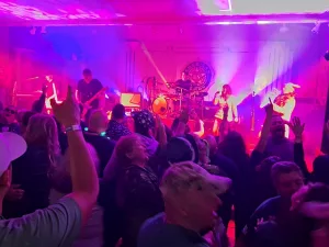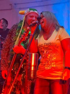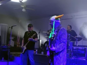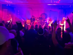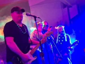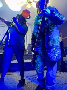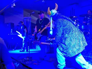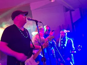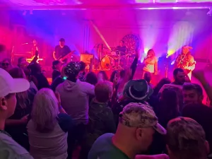 After prize baskets were given away, people were clearly ready to dance by the time the Giants Of Science were ready to perform, evidenced by the dance floor filling up quickly during the first verse of their first song, Neil Diamond’s “Sweet Caroline.” The Giants – Mick on vocals and guitar, Scotty B on vocals and keys, Steve on drums and Johnny 5 on bass and vocals – kept the floor packed throughout their two sets with their mix of 1980s and 90s rocking hits; including numbers from REM, Sublime, Simple Minds, the Cars, Tom Petty, Greg Kihn Band, Georgia Satellites, Modern English, The Cure, Men At Work, Black Crowes, Soft Cell, Bruce Springsteen, Killers, Chumbawamba, Green Day, Dexy’s Midnight Runners and many more. The Giants welcomed several audience guests to the stage to help sing on a few numbers. The party stayed feverish through it all, and when the packed house called for one more, the Giants responded with Tom Petty’s “American Girl” and Billy Idol’s “Dancing With Myself” to slam the lid on a joyous and jubilant night!