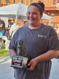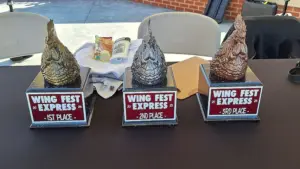 After much wing consumption by the seasoned judging panel, the results of the wing contest were as follows: the first place trophy went to Katie J’s for their garlic wings, second place went to The Castle Pub for their Cactus Jack wings, and capturing third place was T-N-T’s Smoke House Barbecue Company for their black cherry wings. The Trophies were courtesy of The Award Man.